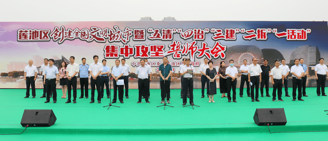 7月14日上午,江南注册大厅作为市级文明单位,参加了由莲池区创城指部在军校广场组织召开的“创建全国文明城市集中攻坚誓师大会”,本次大会有市、区、乡办、行政村相关领导,全区各主管部门负责人,区市场监督管理局、区执法局、区商务局、区人防办等单位,共计1110人到场参会。
